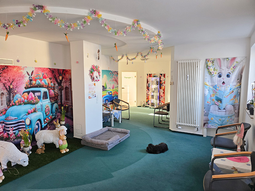 Sollten Sie mit Hunden allgemein ein Problem haben, so teilen Sie uns dies bitte bereits vor Beginn der Therapie mit, so dass wir entsprechende Maßnahmen überlegen können.